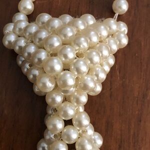 This elegant pearl, vintage necktie necklace, adds a touch of sophistication to any outfit.