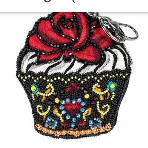 Mary Frances Embroidered Cupcake Keychain with Red Rose