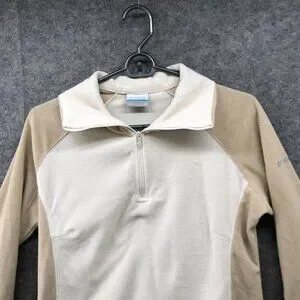Columbia Lightweight 1/4 Zip Fleece Pullover Womens M Beige Tan Sweater