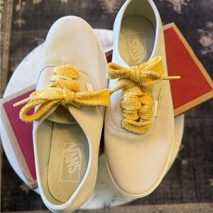 Vans x Free People Authentic Sneakers Cream Canvas Orange Laces Women 8 Men 6.5