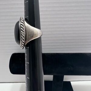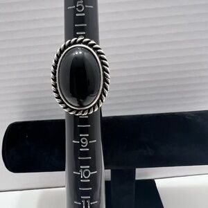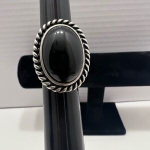 Black Onyx Oval Ring —Estate Find — Beautiful Design— with twisted silver border