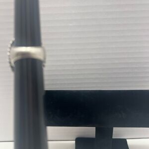 Elegant black oval ring with a silver twisted border. Perfect for any occasion.