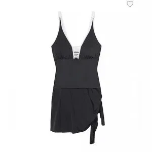 🆕 LEONISA SHAPEWEAR Ladder Front Shaper Swim Dress One Piece Swimsuit Black XL