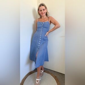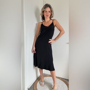 Designed with a V-neck line and complete with a Silk band in the back, the Silk Slip Dress has a relaxed-fit and A-Line shape.