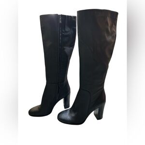 Tommy Hilfiger Frita Brown Leather Houndstooth High Block Heels Tall Boots 8