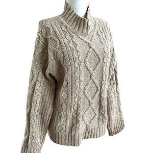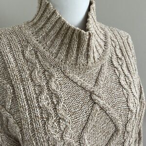 J Crew Marled Wool Blend Pullover Mock Neck Sweater Cable knit chunky Beige L