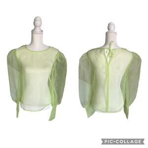 Grey Lab Sheer Neon Green Long Sleeve Keyhole Back Tie Closure Blouse Size Large