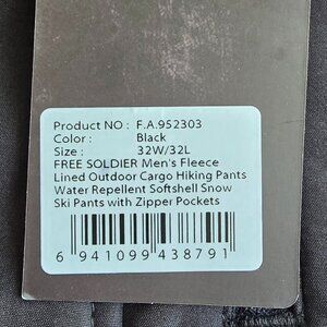 Free Soldier Men's Fleece Lined Outdoor Cargo Hiking Pants Water Repellent