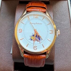 Add a touch of island-inspired luxury to your wrist with this Tommy Bahama Men’s Quartz Moon Phase Watch. This classic timepiece is brand new in box with tags, though it will need a new battery after being in storage. This model is rare and no longer in production, making it a collector’s gem for fans of timeless style and unique design. Comes with box and all original packaging/tags.