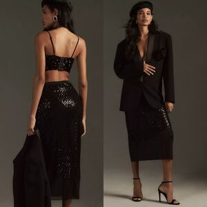 Anthropologie Sequin Netting Midi Skirt