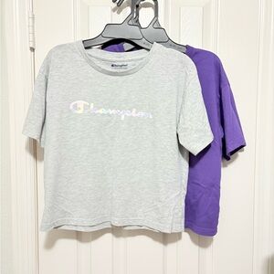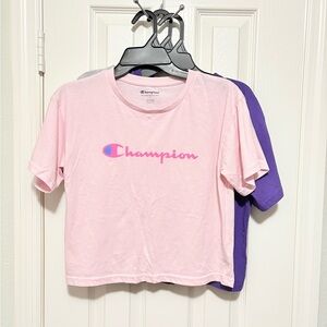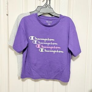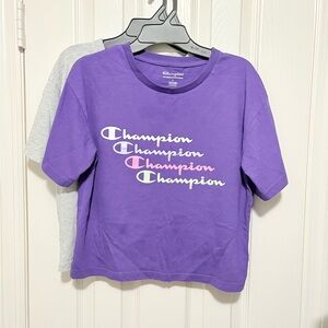(3) Champion logo short sleeve crop top t-shirts for big girls / Size: Large