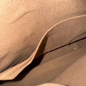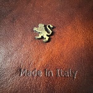 Stylish brown leather clutch featuring a gold accent. Perfect for any occasion.