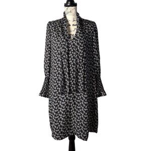 Rebecca Taylor Womens Rue Silk Dress Tie-Neck Black White Floral Size 6