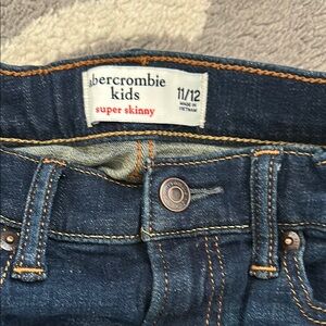 Stylish kids jeans from Abercrombie & Fitch. Includes one dark blue and one gray skinny jeans size 11-12. Perfect for casual wear. And grey puffer vest size boys M . Very good used condition