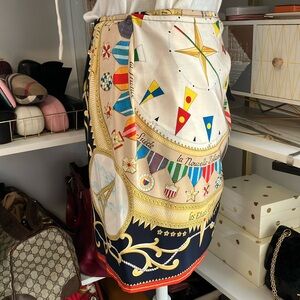 Emanuel Ungaro Blue Cream Asymmetrical Wrap Skirt