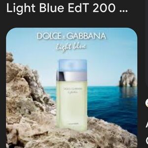 Dolce & Gabbana Light Blue Eau de Toilette with a refreshing scent. Comes in a sleek bottle with a light blue cap.