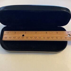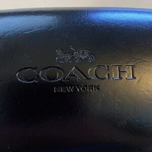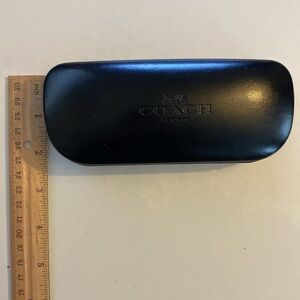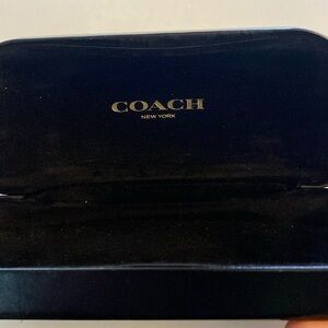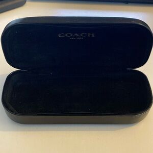 Black hard shell case for eye glasses. COACH logo on top of case and also on the inside.