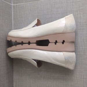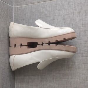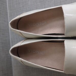Vionic Kensley Patent Loafers in cream. A few scuffs on heels as pictured, otherwise excellent condition! Comes with box and original packaging.