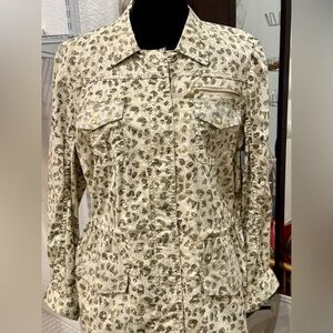 Chico’s Olive and Tan Leopard print Field Jacket