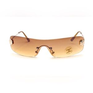 New beautiful Vintage Rimless Shield Chanel 4086 c.125/73 gold sunglasses with brown Gradient lenses without Tag but new comes with nice generic case and cloth.