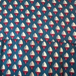 Stylish luxury silk button-up sleepwear shirt with a colorful geometric pattern. Features a front pocket and long sleeves with mother of pearl buttons, collarless band, excellent condition, size 4 ( fits like a s-med )