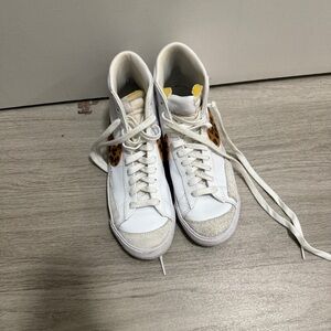 NIKE BLAZERS with Leopard Print Swoosh- size 8