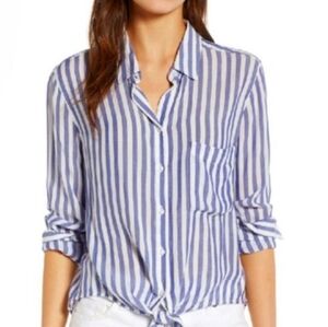 Mer Sea Coastal Blue Pin Stripe Essential Shirt Dress | L/XL