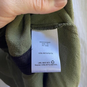 Metaphor Olive Green Black trimmed neckline V-Neck Tank Top, made of 100% Rayon from recycled water bottles, size Extra Small/ XS.