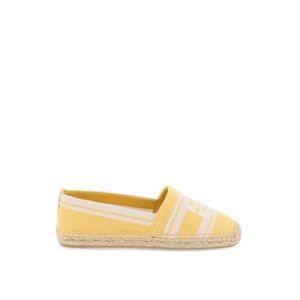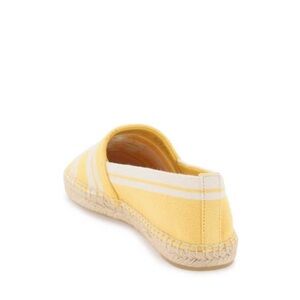 Meticulously crafted in Italian striped jacquard, this yellow espadrille features an embroidered Double T and a jute platform sole stitched by hand. Read less