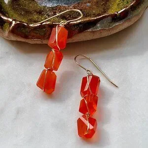 Gold Filled Rough Cut Carnelian Drop Earrings
