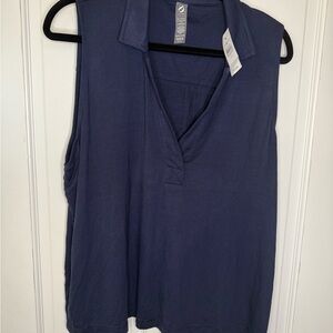 NWT Lou & Grey Signaturesoft Sleeveless Split Neck Top Deep Space Blue Sz XL