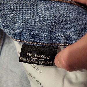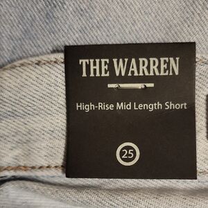 The black tag that said "the warren, high rise, mid length shorts, size 25" that was by the waist popped off when I was trying them on but they still have the other brand new tag. They are currently on their website for $88!