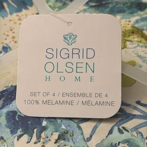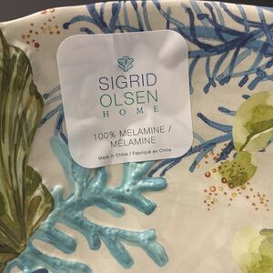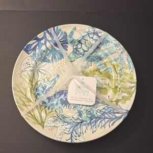 5pc SIGRID OLSEN Blue and Green Coastal Art Bowl & Dinner Plate Set - Melamine
