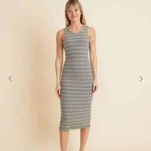 Marine layer Lexi Rib Daytime Midi Dress in Black/White Stripe new with tag
