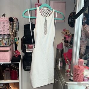 Bebe White side Cut-Out netted back Bodycon mini Dress vintage