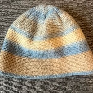 Lacoste 100% Wool Blue and Cream Beanie Winter Hat