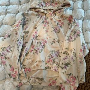 These charming joggers by GAP Live Shack Fancy feature a delightful floral design. The cream base is beautifully accented with pink and purple flowers, offering a cozy and stylish sleepwear option for you