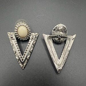 Elegant silver and cream geometric earrings perfect for any occasion. Add a touch of southwestern sophistication to your outfit.