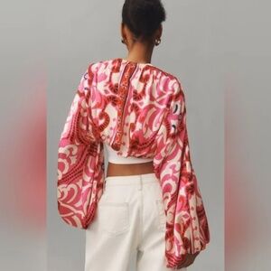Anthropologie Josie velvet quilt full floral birds pink blue green