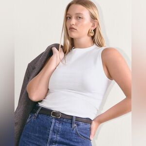 Everlane The Luxe Rib Funnel-Neck Tank White Size XXS. Condition is new without tags. But fabric pulled. Measurements