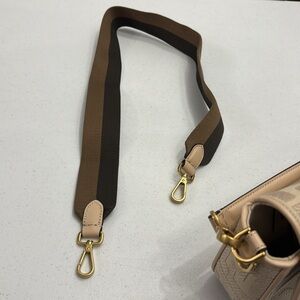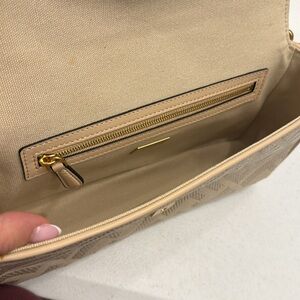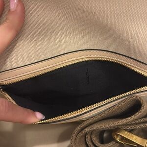 Good condition. Comes with a strap too. 10.5” x 6” x 2.25”. Strap drop 3.5”. The long strap is 38.5” long including the gold rings. The width of the strap is 2”. Minor wear if any. Only flaw to pint is out the middle mark inside the bag.