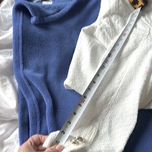 Light Summer jacket, never worn, with beautiful trim and gold color buttons. NWT perfect with dresses pants or shorts. Wear in city or for travel. No size tag so see measurements in pictures.