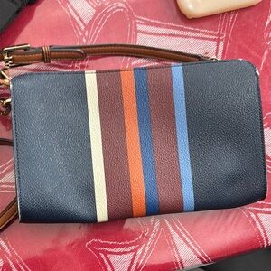 Tory Burch Blue and Brown Crossbody Bag with Striking Stripes