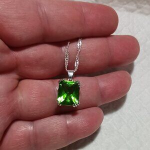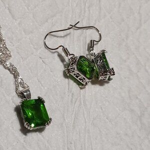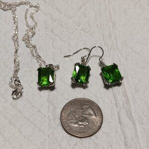 Olive Green Simulated Peridot Necklace and Earrings Fashion Jewelry Set