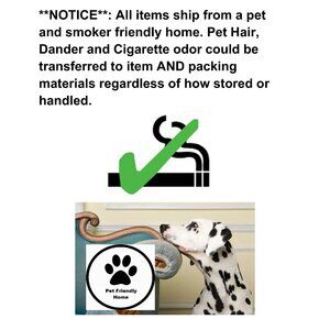 **NOTICE**: All items ship from a pet and smoker friendly home. Pet Hair, Dander and Cigarette odor could be transferred to item AND packing materials regardless of how stored or handled.