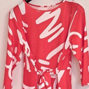 Maxi Dress Long Sleeve Abstract Print Casual Crew Neck Smocked Dress 2XL. 95% Polyester/5% Elastane. New without tax. Front tie. Measurements: Bust - 46" - 48", Waist - 36" - 38", Hip - 46" - 48". Length falls at ankle.