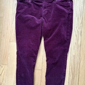 Stylish high-top sneakers in gray and green. Features vibrant purple laces for a bold look.