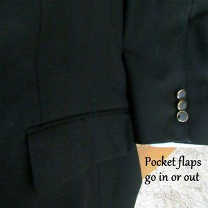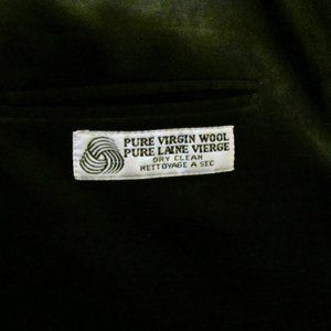 This is most likely a custom made jacket from Savile Row, London, made in Canada. See the photos for details of this fine wool sport coat. LIned beautifully in black, it has both inner and outer pockets, with flaps that can tuck and disappear.