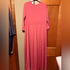 This elegant pink dress is perfect for any occasion. Surplice neckline with empire waist. The lining is fleeced and the skirt is a very slight a-line. Its flattering design and soft fabric make it a must-have in your wardrobe.