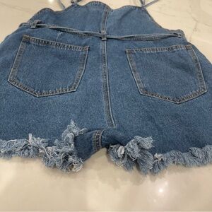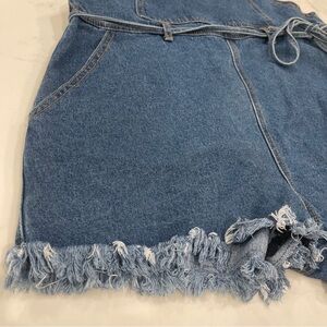 NWT Forever 21 Denim Frayed Hem Overalls with Adjustable Belt and Pockets
